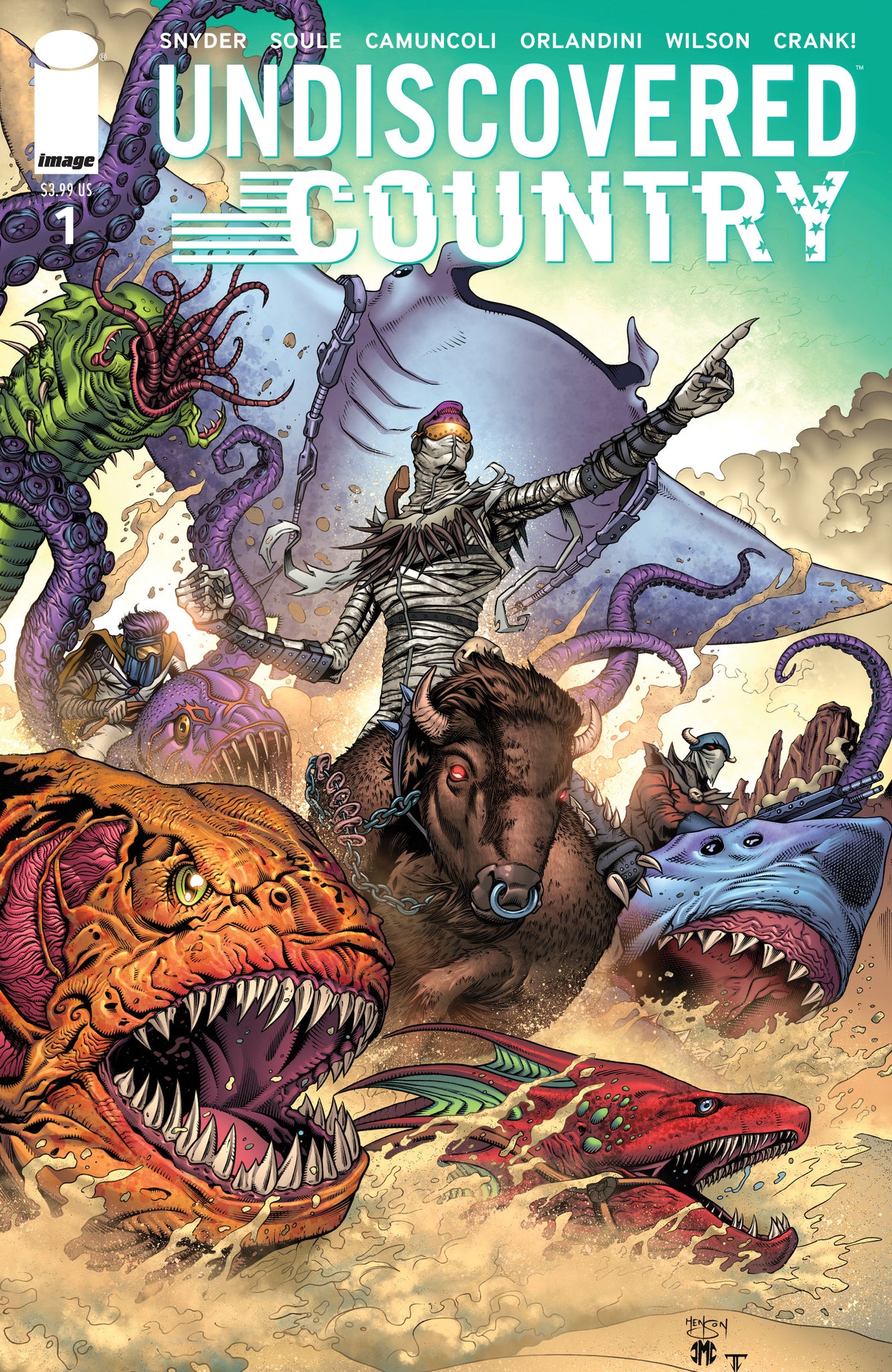 SERIES PREMIERE! This November, New York Times bestselling writers SCOTT SNYDER (WYTCHES, A.D.: AFTER DEATH) and CHARLES SOULE (CURSE WORDS, the forthcoming novel Anyone) will team up with artists GIUSEPPE CAMUNCOLI (The Amazing Spider-Man, Darth Vader, Hellblazer) and DANIELE ORLANDINI (Darth Vader) and 2019 Eisner Award-winning colorist MATT WILSON (THE WICKED AND THE DIVINE, PAPER GIRLS) to embark on an epic adventure in the brand-new ongoing series, UNDISCOVERED COUNTRY!